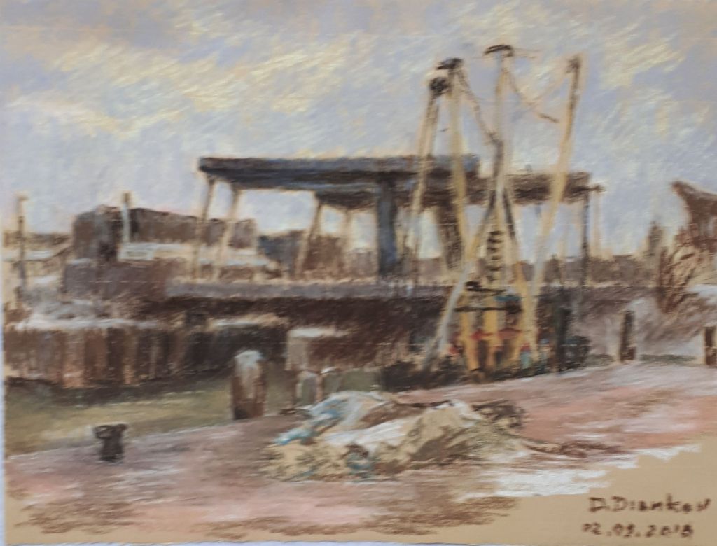 BLUE BRIDGE ON WINTER drawing from life